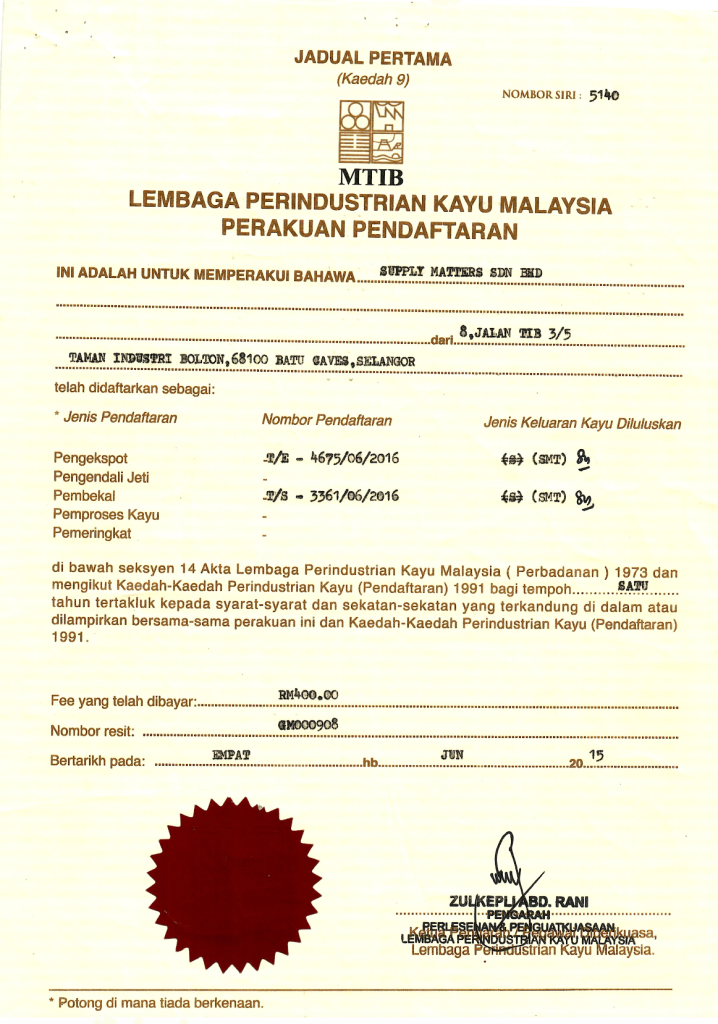 We obtained our timber export license from the Malaysian timber Board in 2015. Since then we have been exporting timber on a regular basis to some resort projects and individual clients. Currently we are a member of the Timber Exporters Association of Malaysia (TEAM).
