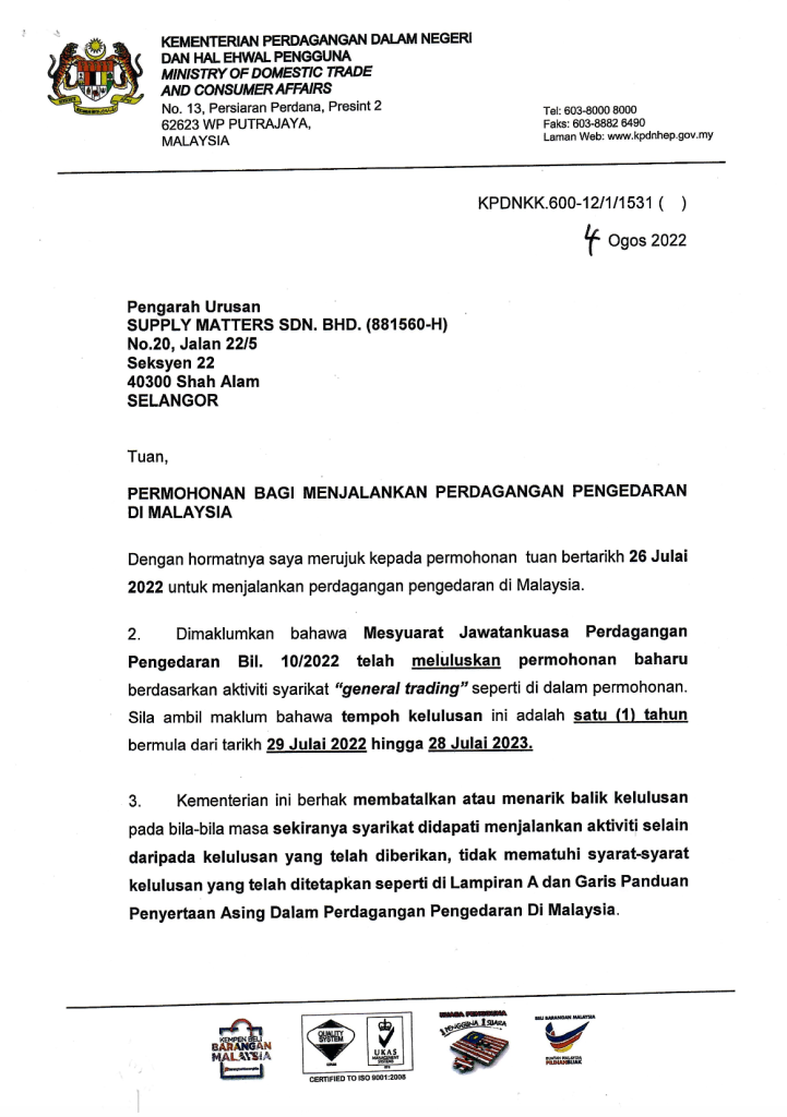 Supply Matters Sdn Bhd was established as a sourcing and trading company in Malaysia and incorporated with Suruhanjaya Syarikat Malaysia on 4th December 2009.